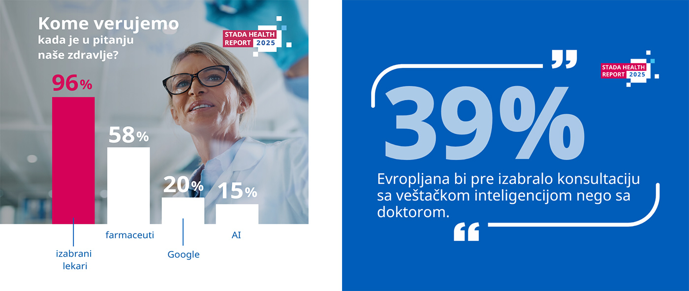 Dok mnogi Evropljani vide koristi od veštačke inteligencije u zdravstvu, zabrinutost oko tačnosti informacija i privatnosti podataka i dalje su prisutne • ŠTADA zdravstveni izveštaj za 2025. pokazuje da građani i dalje najviše veruju zdravstvenim radnicima, iako otvorenost prema veštačkoj inteligenciji raste.